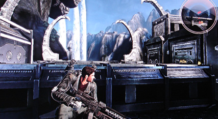 「Dark Void」の特徴はなんといってもジェットパックを駆使したホバリングアクション!ロケッティアのごとく、空中をビュンビュン飛び回りながら敵を打ち落とすフライト・シュミレーター的な面白さや、断崖絶壁を登りつつ応戦する”縦の戦い”も味わえたり、通常は平面的に進行・展開するTPSとは違う面白さを加味しているところがポイントです
