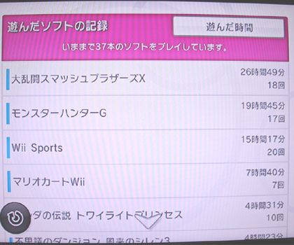 スマブラもWiiスポもちょくちょくやってるしね。結構な時間費やしてるんじゃないの?と思いきや