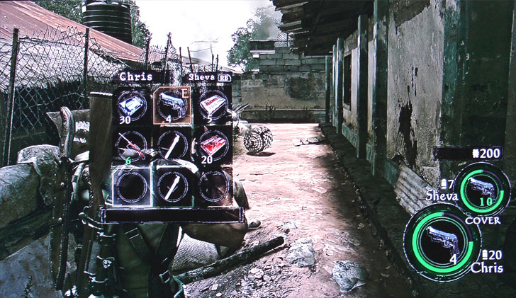 COOP対応なのでアイテム選択中も敵は止まってくれません。アイテムリストを開かなくても十字キーでアイテムと武器をショートカット選択できるのは便利。パートナーとアイテムの受け渡しも出来る。今回の体験版はオンCOOPも対応しているがLiveが不調なのか何回繋いでもネットワークエラーで落とされてプレイ出来ず。残念。