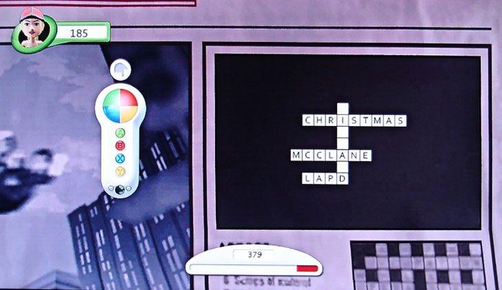 クロスワード問題。「CHRISTMAS(クリスマス)」「MCCLANE(マクレーン)」「LAPD(ロス市警)」で導き出される最後の一行は…?答えは「ダイハード」。このように出題される問題は有名作がほとんどだが中には聞いたこともないような(知ってはいても原題でピンと来ない、もしくは日本人にはなじみの薄いような)問題も当然多い。