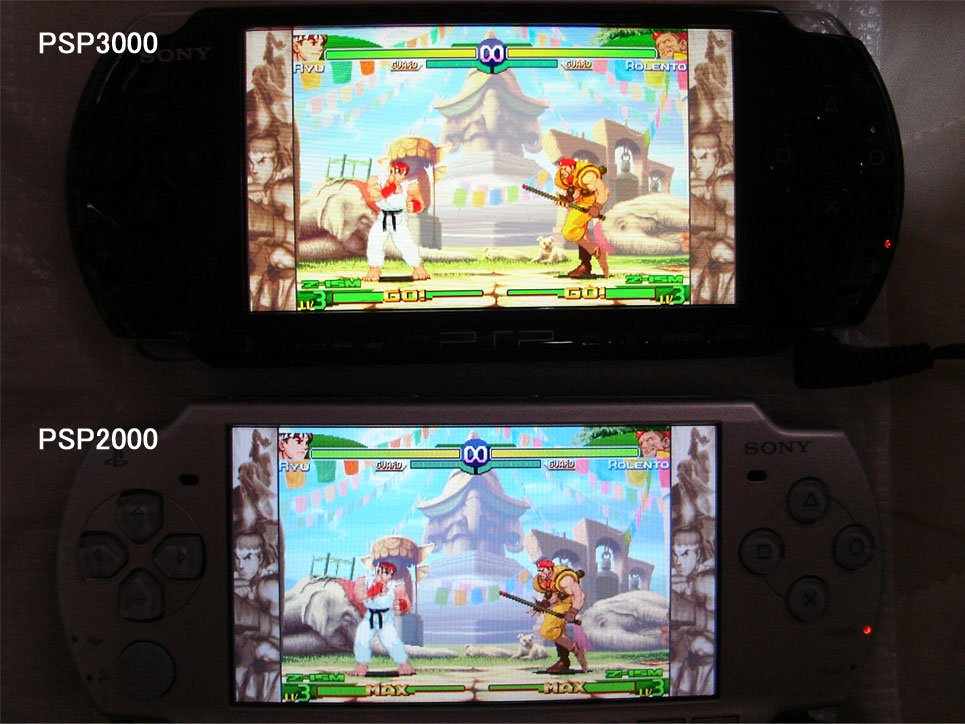 ちなみオプション設定でカラースペースをワイドからノーマルに設定することで一応濃さは低減する、公式にはカラースペース設定は「従来のPSP-1000/PSP-2000シリーズと同様の色域を再現して表示する」とあるが、ノーマルにしてもあまり一緒には見えなかった、液晶が違うので当然だが…。個人的にはワイド設定で十分綺麗だと思うけど、もう少し細かくコントラストを切り替えられると便利かな、とも思った。