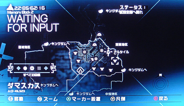 マップでミッションの場所を確認、ミッションの種類はアイコンで表示されるためとても分かりやすい。