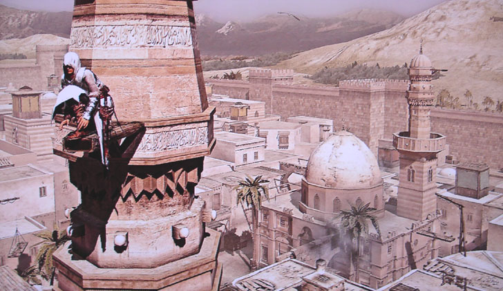 美麗なグラフィックで描かれる1191年のエルサレム。彩度を抑えた淡い街並み、街の所々に落ちるドラマティックな陰影など中東の神秘的な雰囲気がよく再現されている。