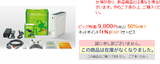 ビックカメラ.comでXbox360アーケードが破格の9800円で販売。が、即瞬殺されたみたい