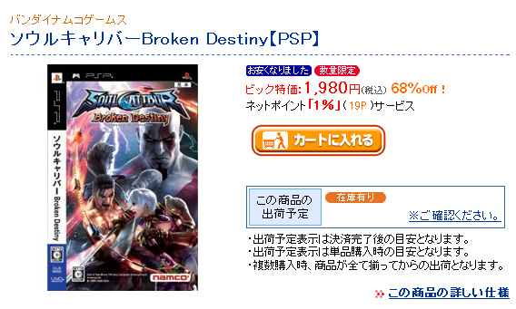 ソウルキャリバーBroken Destiny【PSP】 ビック特価:1,980円(税込) 68%Off!
